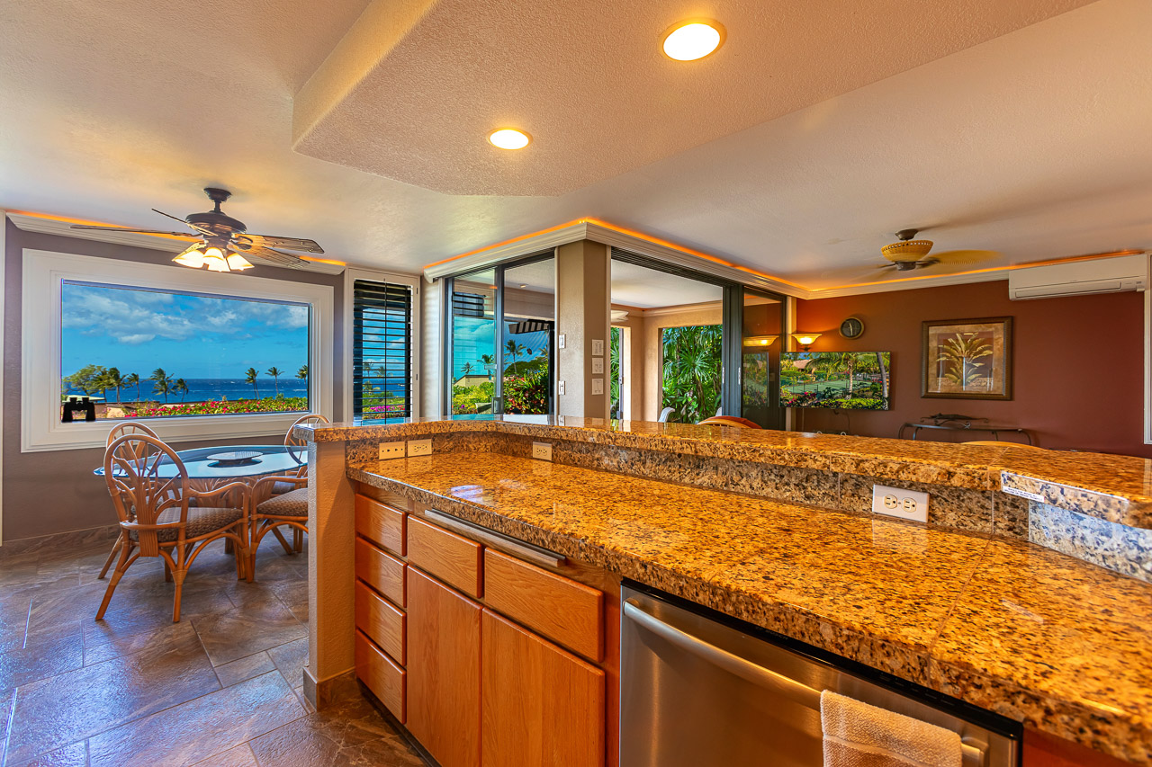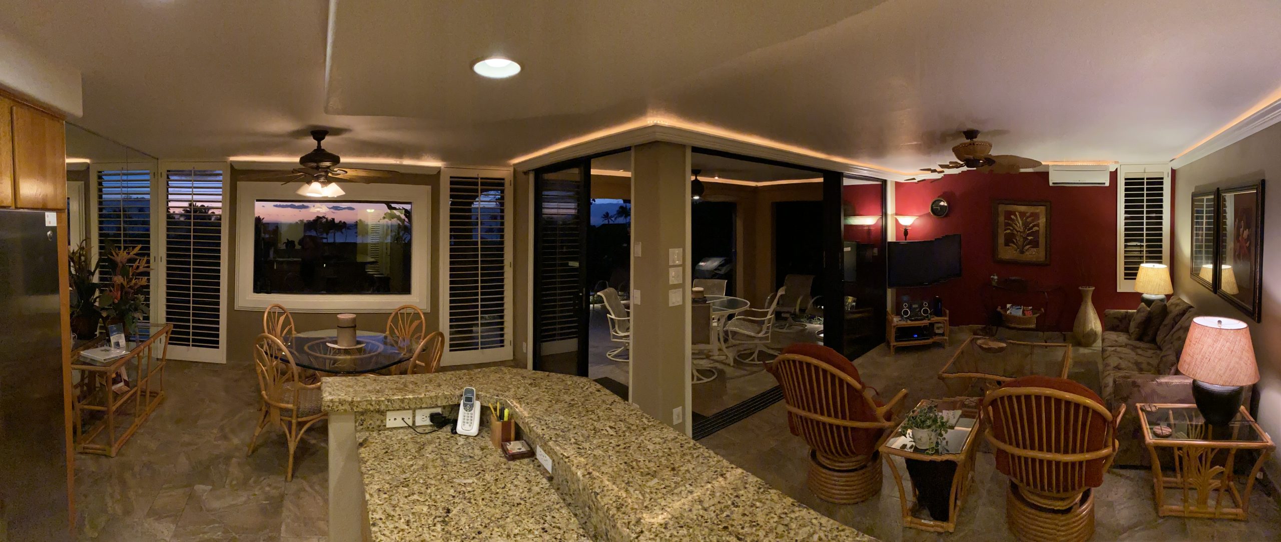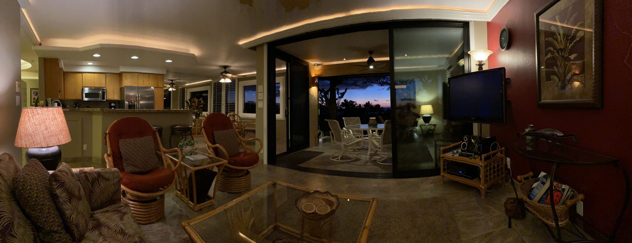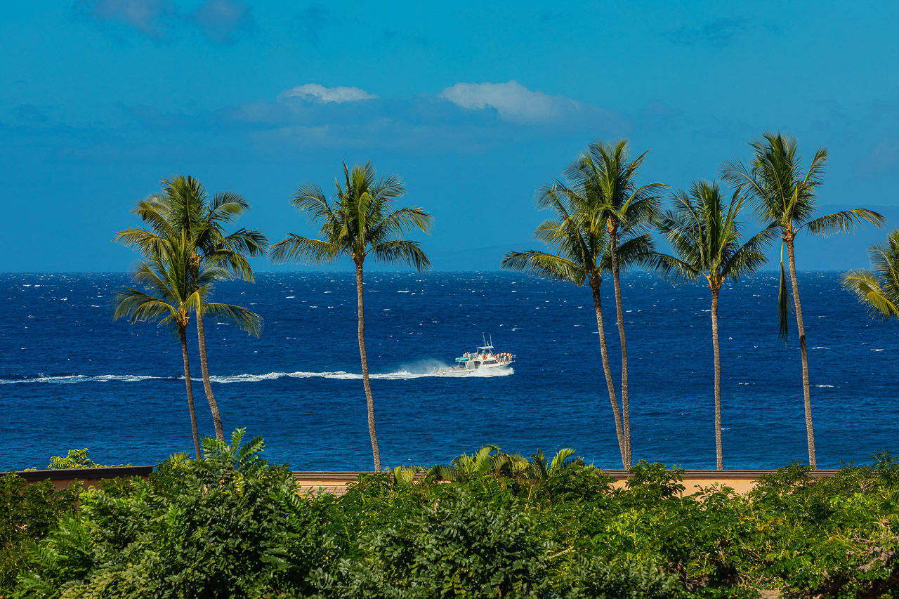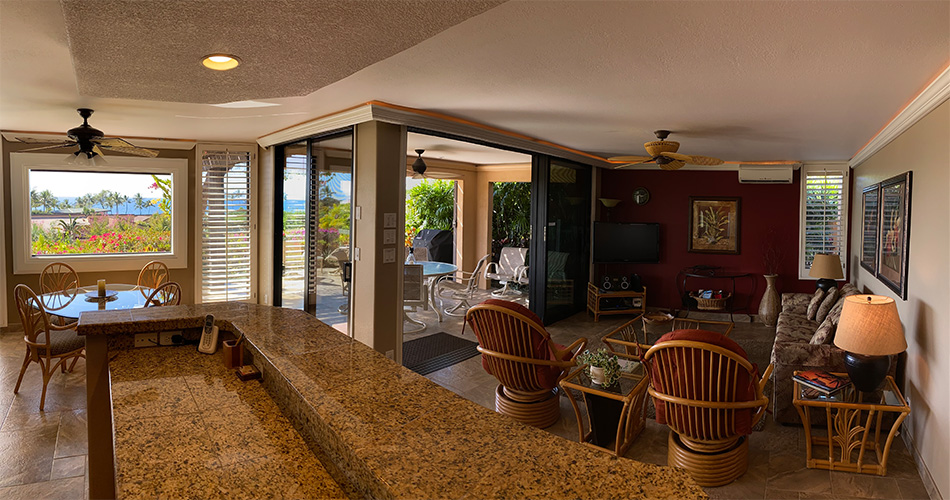 Our panoramic ocean views are perfect for watching boats, whales and beautiful sunsets from the living room, dining room, kitchen, main lanai area and bedroom lanai.