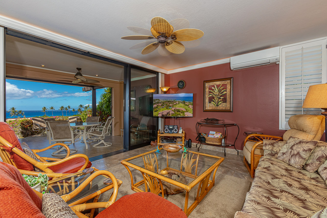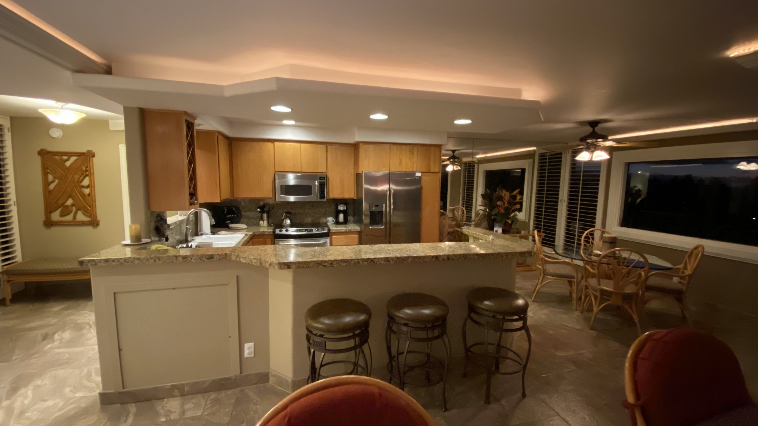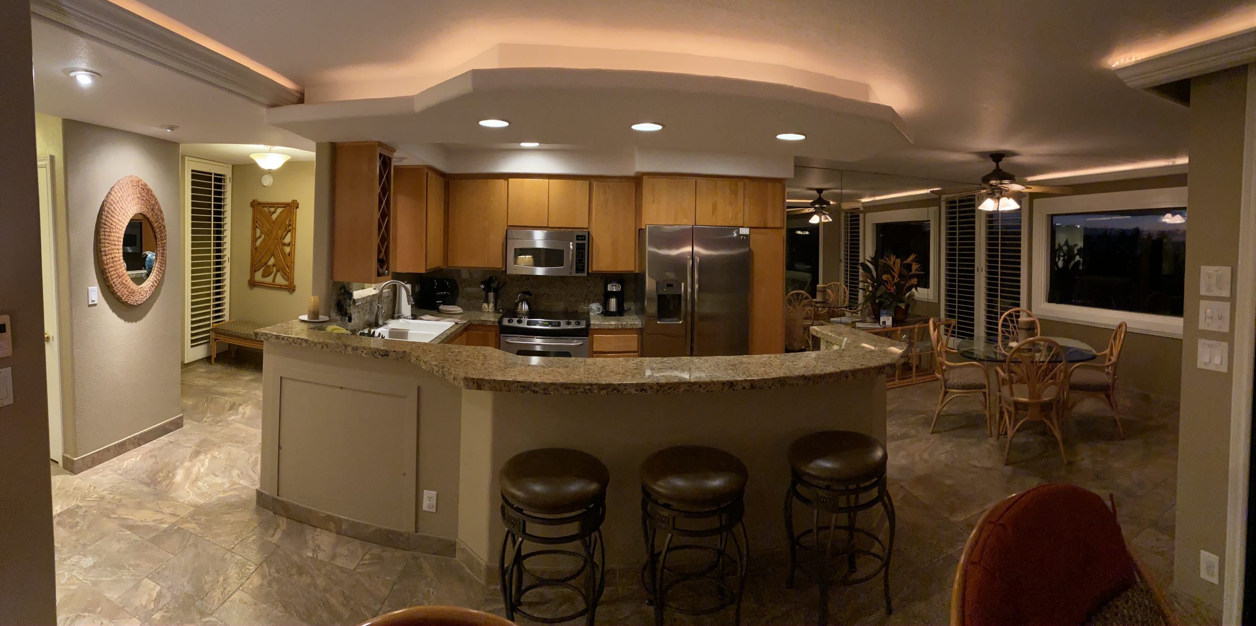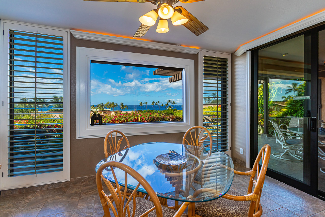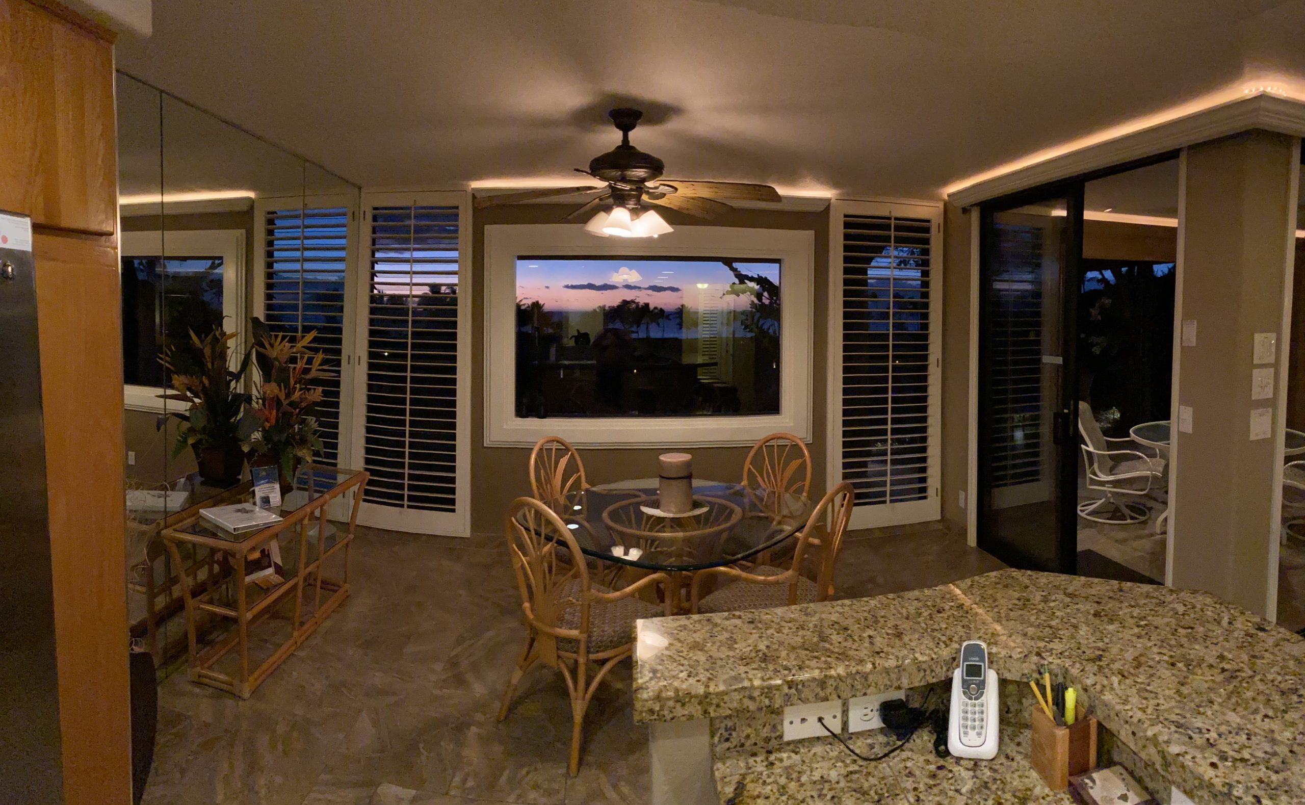 Our panoramic ocean views are perfect for watching boats, whales and beautiful sunsets from the living room, dining room, kitchen, main lanai area and bedroom lanai.