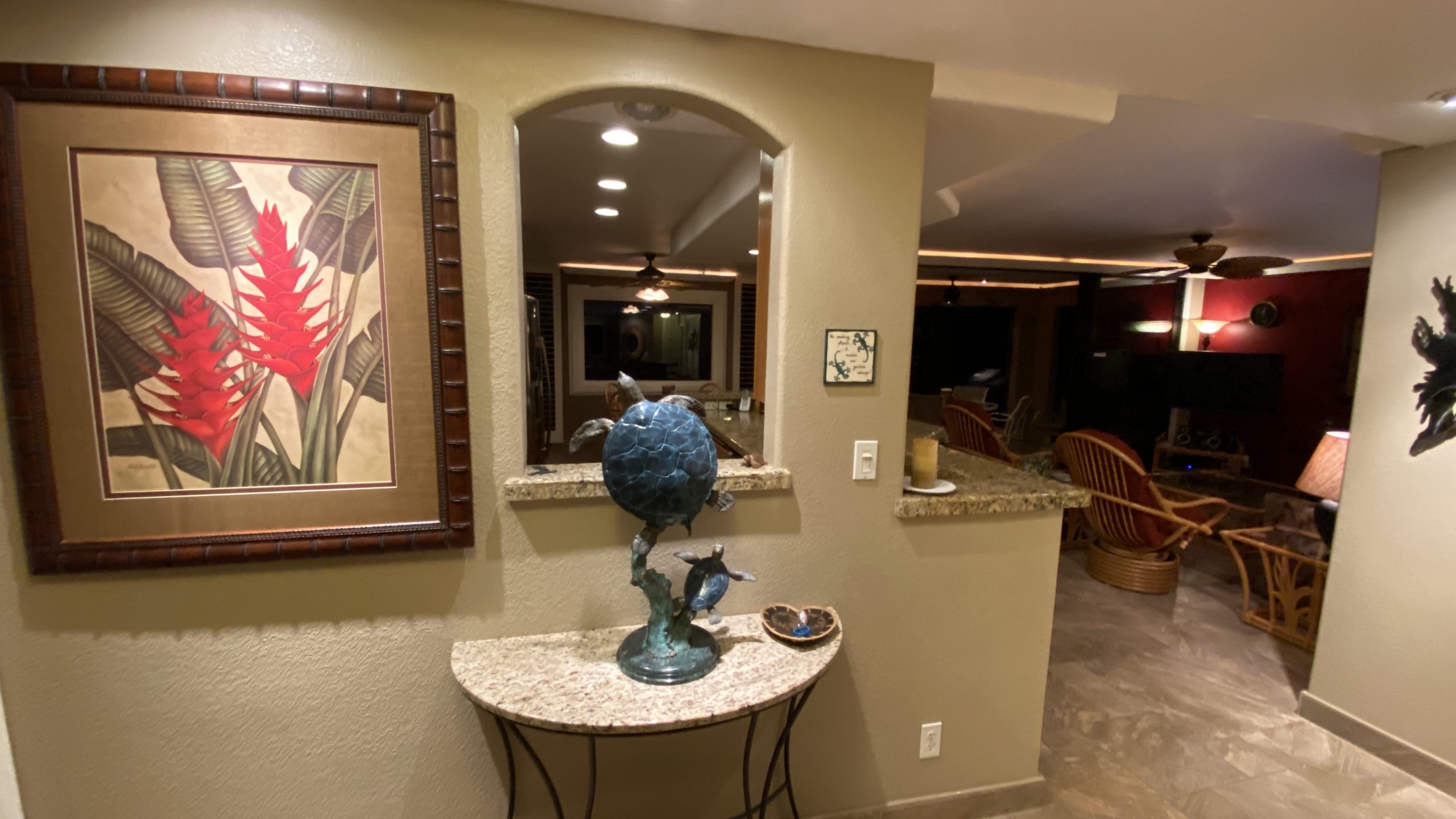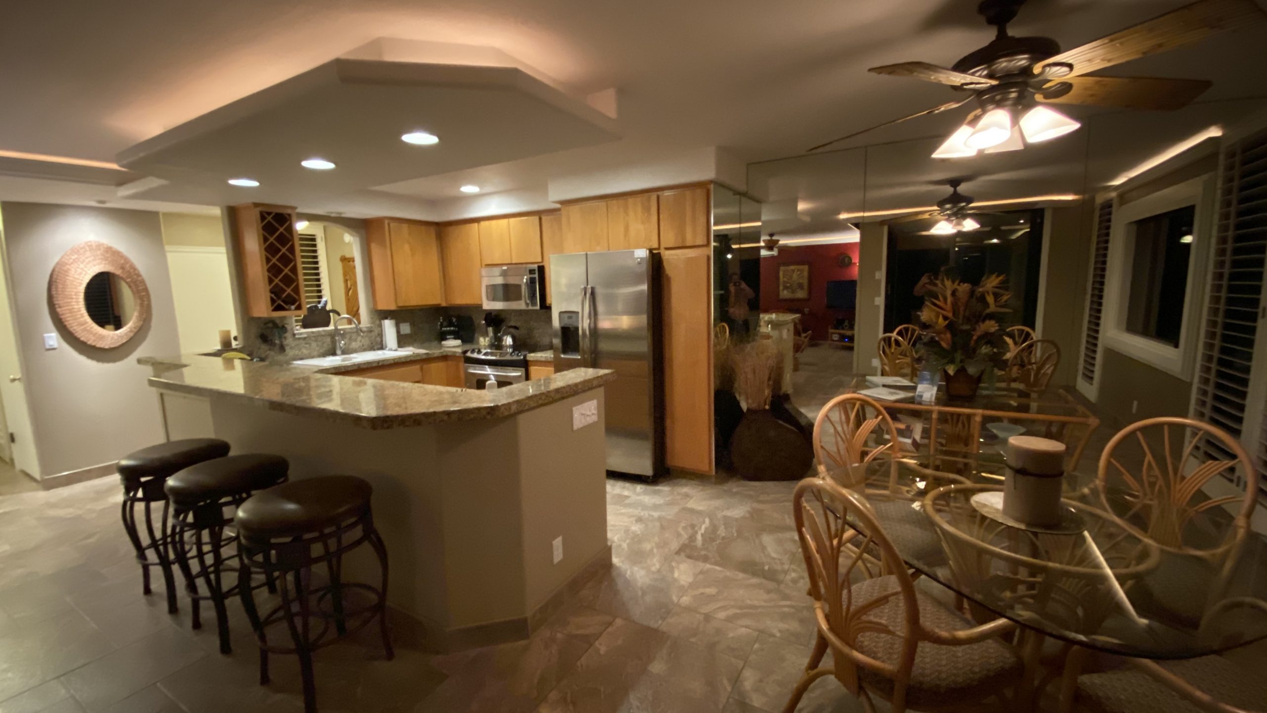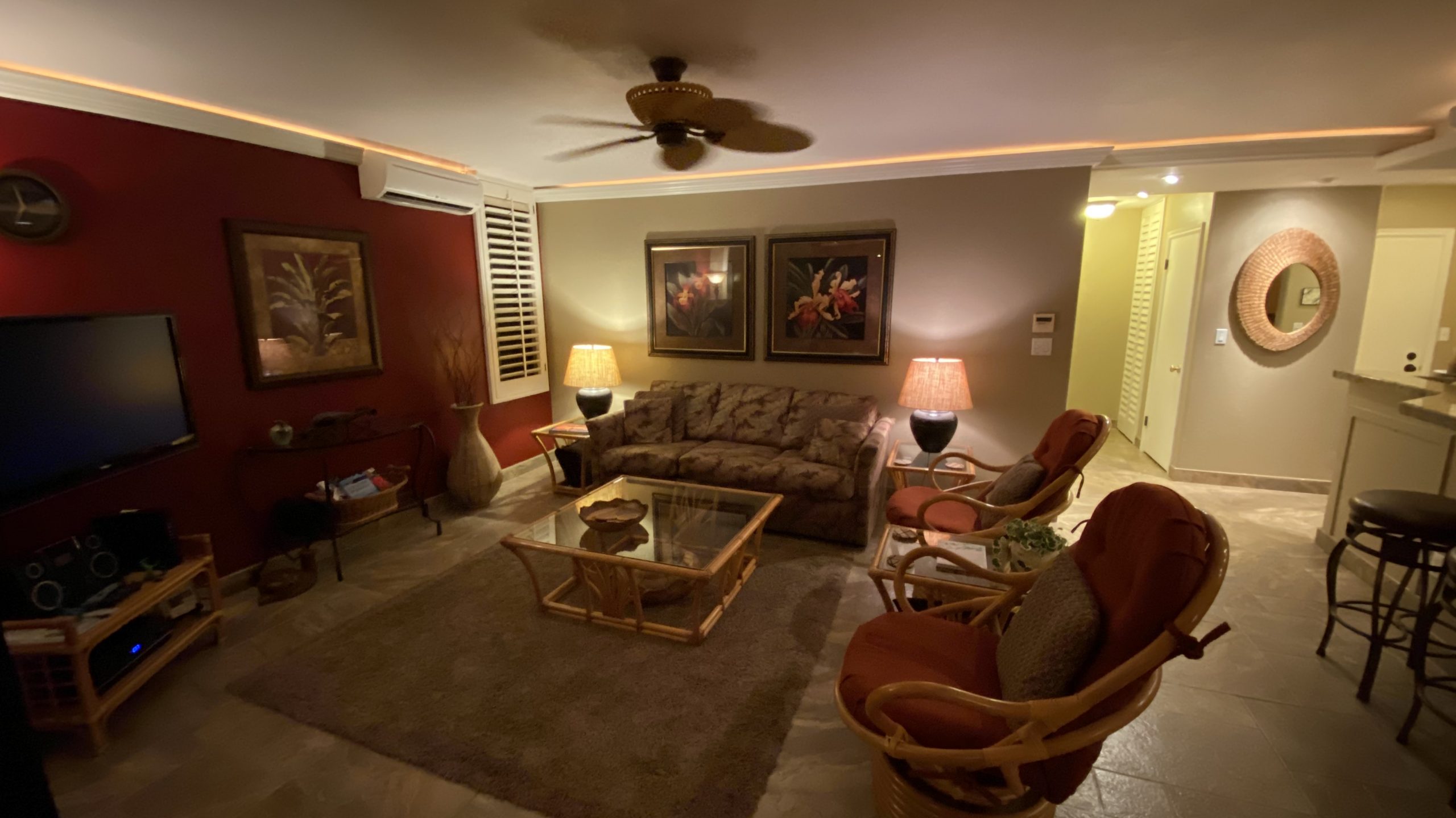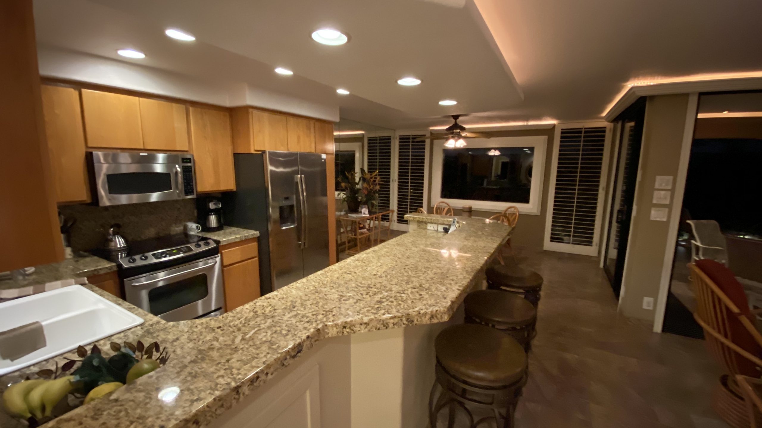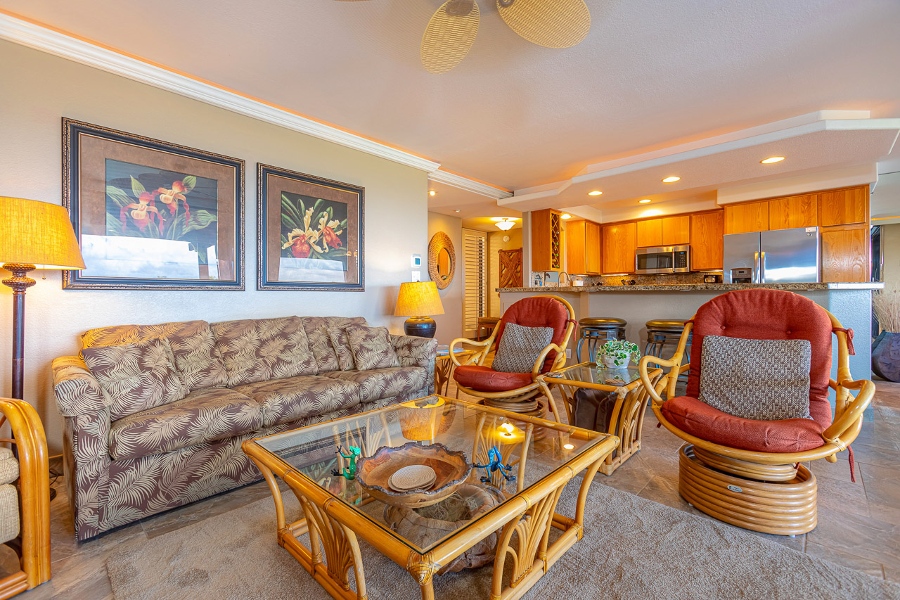 Our panoramic ocean views are perfect for watching boats, whales and beautiful sunsets from the living room, dining room, kitchen, main lanai area and bedroom lanai.