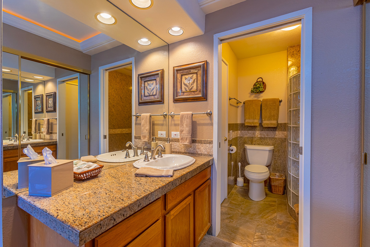 Wailea Ekahi Unit 2A is a newly renovated, two bedroom, two bath, ocean view, luxury vacation condo in the prestigious Wailea Resort area on the island of Maui. Stunning ocean views from this recently renovated lower village condominium. This spacious condo is a convenient ground floor unit. It features recently remodeled two bedrooms and two bathrooms with a renovated kitchen with granite countertops that open to the living room in a great room design. Each master bath has new granite and glass block walk-in showers.